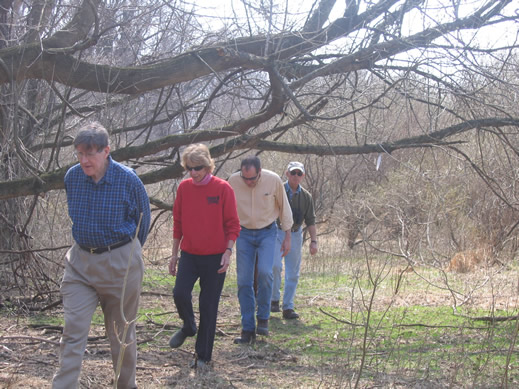 The far end of the walk took the walkers past the markers for an aerial photograph that will indicate the areas delineating the future playing fields and the Lawrence Hopewell Trail route.